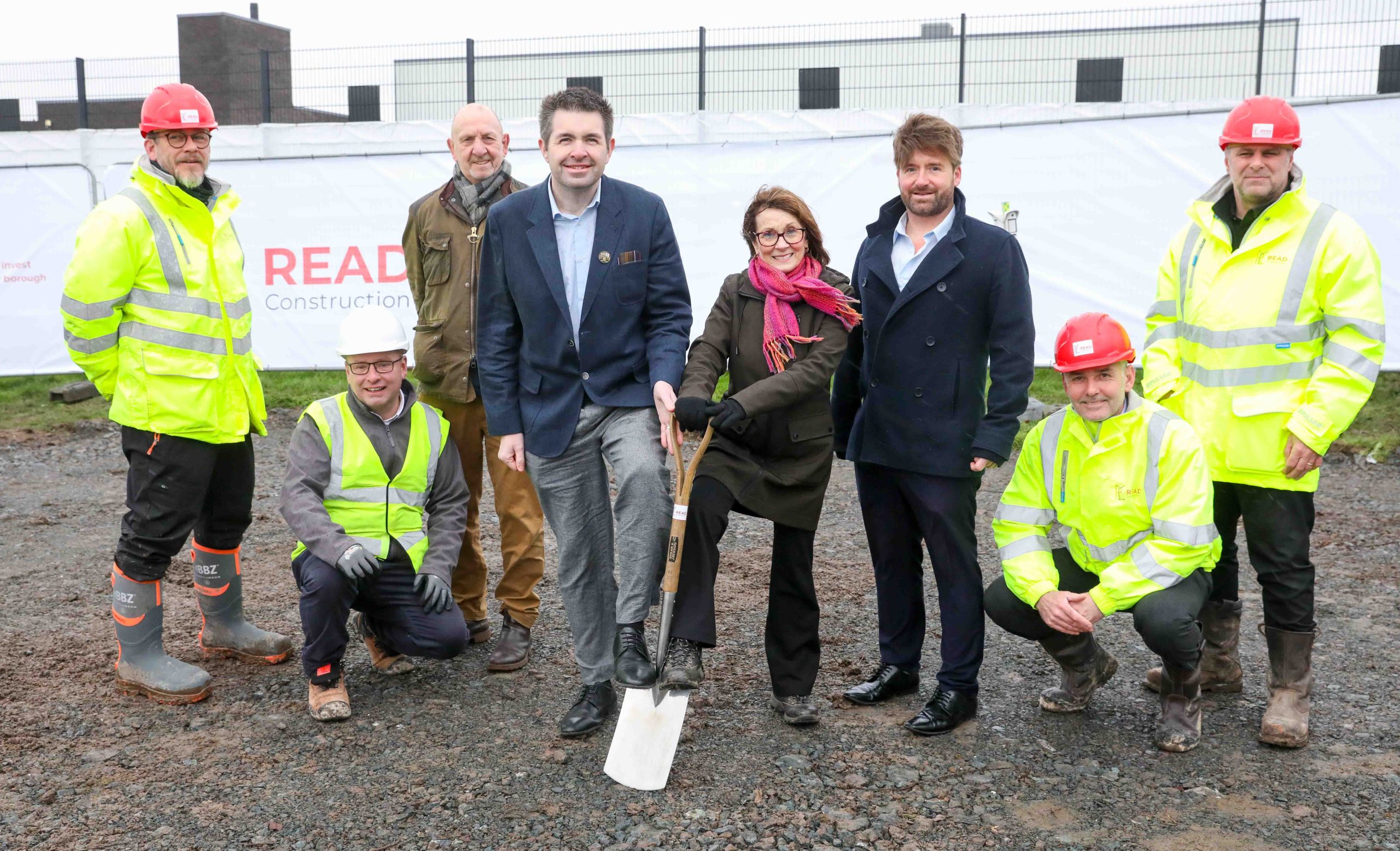 Eilian Jones (Read), Richard Horton (Project Manager), Cllr Lee Carter, Shaun Davies MP, Cllr Angela McClements, cllr Ian Preece, Dawid Cloete and Stuart Hetherington (both Read)